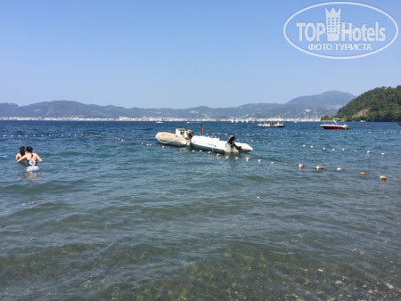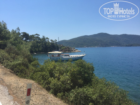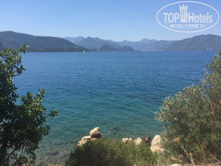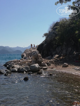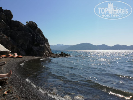 Отель не большой, но уютный, отдыхала с мамой 86 лет и ребенком 8 лет. Пляж через дорогу, живописное место, окруженное горами, сосны, скала, всегда есть место, лежаки бесплатно! На пляже часто проводят свадьбы, можно посмотреть и даже поприсутствовать. Местные из Марсариса приезжают на море именно сюда, познакомились с хозяином ресторана. Он брал в прокат прозрачную лодку для своих детей. Море чище, чем в самом Мармарисе.
