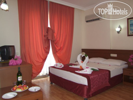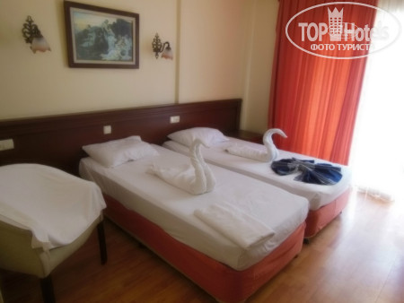 Отдыхали 4 суток с подругой. Номера неплохие, просторно, кондиционер работал исправно, в ванной небольшой набор туалетных принадлежностей ( уборка ежедневная+ смена полотенец) есть небольшой балкончик со столиком, у нас номер был с видом на соседний отель-повезло, есть номера с видом на бассейн и ресторан-там шумно до 23.00. Питание для 4-ки грустноватое-1 вид мяса, 1 вид рыбы-остальное овощи, сладости, фрукты, детям и мужчинам будет не очень сытно. В баре делают коктейли, вкус посредственный, хотя ребята стараются, в дневные часы в том же баре- мороженое, тоже так себе. В отеле спа-зона- хаммам и сауна....уставшие, посещение удовольствия не доставило. Также на территории бассейн и аквагорка, не пользовались) Пляж в 7 минутах ходьбы, мелкая галька, заход в воду вполне комфортный, лежаков достаточно, пляжные полотенца можно взять на ресепшене- под залог 5 $. Рядом с отелем экскурсионные бюро, магазинчики, 2 Мигроса, неплохие кафешки с кальяном, остановка местных маршруток. Анимация есть, но не каждый день. Из несомненных плюсов- интернет на всей территории отеля. Для детей в отеле никаких локаций и развлечений нет, только минидиско. В целом отдых удался, отель- твердая тройка с плюсом