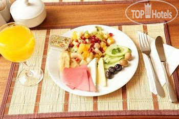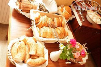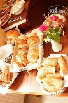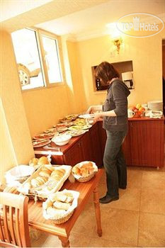 Завтраки проходят на цокольном этаже - там комната на 3 столика. Кушали только русские. Шведского стола нет - дают тарелку, на ней сыр белый, жёлтый, плавленый, маслины, масло, джем, колбаса, вареное яйцо, помидоры, огурцы - всего по несколько кусочков. Также нарезан батон. Из напитков чай или растворимый кофе - подаёт кто то из сотрудников. И каждый день одинаковый ассортимент.