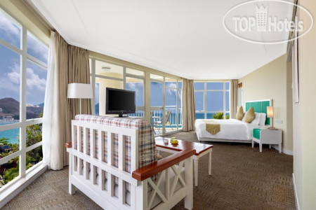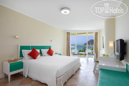 Нас заселили сначала в маленький номер , с маленькой кроватью (а нас трое, ребенок 6 лет), но с видом на море. Без балкона, панорамные окна. Ближе к обеду нам предложили другой номер, размером гораздо больше и большой кроватью , но вид боковой на море и на крышу. Мы согласились , в окно особо не смотрели , так как в номер приходили только спать))) Сам номер достаточно большой , на стене проектор, вместо телевизора, душевая и туалет за матовой стеклянной дверью, которая плохо закрывалась. Звукоизоляция конечно совсем ни какая . Уборка хорошая . Вода, чай, кофе, сахар. В ванной пополнялось все ежедневно, это зубные щетки, бритва, шапочки с резинкой для волос, расчески, туалетная бумага, гель, шампунь стационарные.