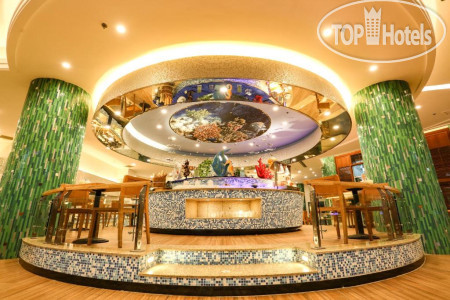 вообще расположение отеля очень удачное, нам очень понравилось, с одной стороны выход на пляж , с другой в город, где куча кафе, недалеко парк с каруселями , там постоянно музыка и танцы, а за парком ТЦ Ананас. В Ананасе на фудкорте на 3 этаже, понравилось кафе с сушами и ролами, там по центру крутящийся стол , за которым ты сидишь и перед тобой проезжают тарелочки с ролами, понравившиеся берешь и ешь)