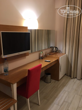 Вся техника в исправном состоянии. Мебель, техника и интерьер, конечно же, не новые, но для нас это не имеет значения, т.к. крайне мало времени на отдыхе проводим в номере. Стоит отметить, что матрасы на кроватях удобные. Уборка в номере ежедневная, постельное белье и полотенца чистые, горячая вода из крана в любое время суток, перебоев не наблюдали. Кондиционер также без проблем справлялся с поставленной задачей. Wi-fi и сейф в номере платные. Стоимостью не интересовались. Хватало бесплатного wi-fi в лобби отеля. Плюс один из телефонов подключался к бесплатному wi-fi с балкона нашего номера. Сигнал, конечно же, был уже слабый. Но для того, чтобы почитать новости и зайти в соцсети его хватало. Вода в индивидуальных стаканчиках была в номере только в день заезда. Потом покупали бутилированную воду сами.