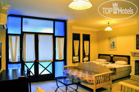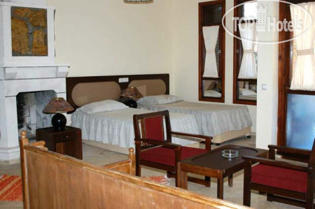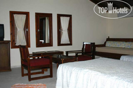 Ну не скажу что совсем все плохо. Заселили в домики, или коробочки их еще называют. Сначало собирались менять на главный корпус, потом присмотрелись через день - а вроде и не плохо. Столик, лавочка при входе в номер, цветочки, тишина, народа нет, шума нет. Мебель конечна староватая, сантехника работала, кондиционер вообще отлично спасал. Минус - негде сушить белье , полотенца. Так и вешали на все обозрение купальники, прям на деревья или лавочки. Поэтому предусмотрите веревки с собой.