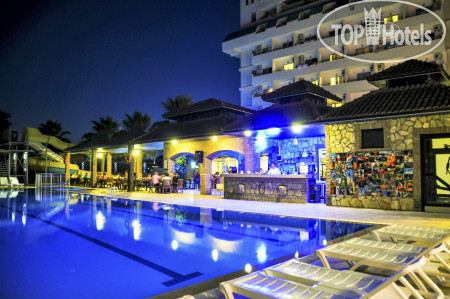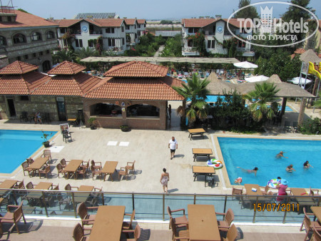 Пляж - это в основном разбитые шезлонги, без матраса, вдали от моря. Если хотите у моря - это тоже шезлонги и также без матраса на городском пляже с песком, который весь в бычках сигарет -все это за 5 $. Вход в море -3 метра высота до щиколотки и дальше уже глубоко, буйки где-то в 5 метрах об берега. Плюс в том, что можно погулять по береговой линии и увидеть нормальные отели с нормальным пляжем и песком, все они будут намного лучше! И там можно купаться и выбирать заход в море по душе. Но присесть, конечно, на шезлонг никто не даст -охрана четко следит. Кстати на пляже , где шезлонги от нашего отеля, по одну сторону ларек с мороженным, а по другую кафе и там и там порой одновременно включают музыку на полную громкость! Голова будет кипеть.. В отелях выше уровнем музыки обычно нет или она приглушенная. Мороженное вкусное -шарик большой 100 лир, кофе натуральный 80 лир, по вкусу не очень, но гораздо лучше того, что в отеле.