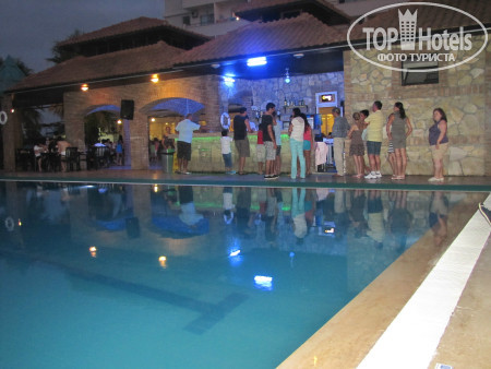 Ресторан - очень жарко, питание обычное, через неделю курица капец как надоела. Бар в ресторане - только вода и кола. За алкоголем надо идти в бар к бассейну. С этим баром тоже беда - к вечеру( 16-17,00) пиво, водка заканчивалась, появлялась только на ужин. Барменов как будто на цепи привели работать, вечно недовольные. А так вина всякого было. Насливаем в бутылочку и можно еще сидеть до поздней ночи.