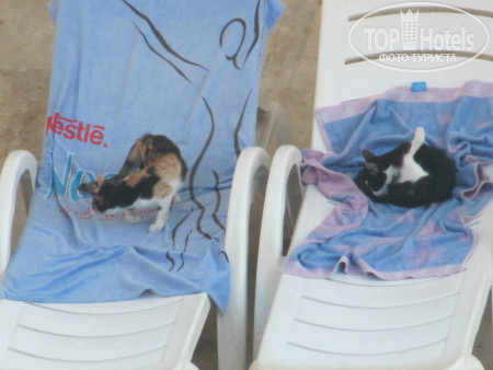 Территория отеля -убирается только в центре возле бассейна. В зоне бунгало почти не убирают, но там очень красиво-много пальм, цветущих деревьев и все утопает в зелени! Вокруг отеля есть теннисные поля -территория за забором, но виды на них живописные. Также вокруг отеля много теплиц и есть красивый вид на парк Легенда. Также много кошек на улице в отеле, но запаха на территории я не заметила и кошки смирные и ласковые.