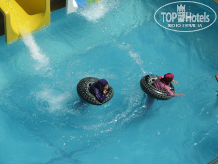 Развлекали себя сами. Ругались не однократно с аниматором- он один на весь отель. Вечером включит музыку только турецкую, хотя днем много было русских песен. Какие то были прыгалки с детьми, но редко наблюдала, дети развлекались только на горках.