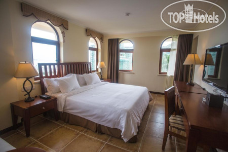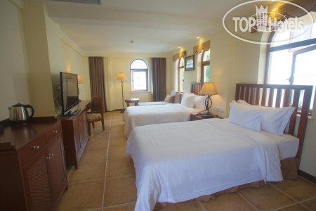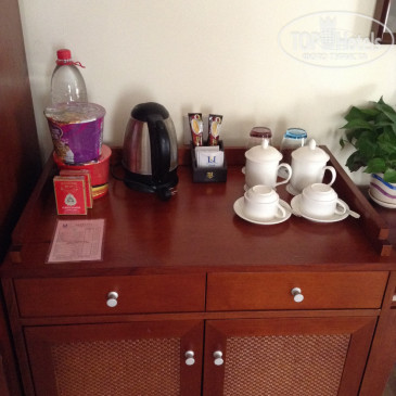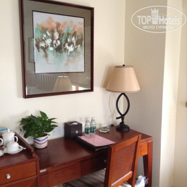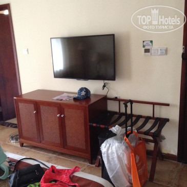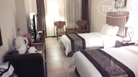 Номер в отеле уставший, но переночевать неплохо. Есть шкаф для одежды, огромная кровать, тумбочки, телевизор ( только китайские передачи), холодильник, кондиционер, чайник, подвесное кресло, выход на общий балкон. В ванной комнате большая душевая с тропическим душем, раковина, унитаз. Ванная нормальная, если не поднимать голову к потолку ( плесень, разводы) Зубные щетки и паста докладывают каждый день, расческа, пилка, банная шапочка. фен и две пары резиновых тапок. Два банных полотенца, два маленьких для лица. Полотенца меняют каждый день. Для ног полотенца нет, нужно просить у горничных. Кондиционер прям над кроватью, поэтому приходилось его выключать и открывать окна. Соответственно в комнату залетают насекомые, хотя в комнате стоит фумигатор, но особой пользы мы не почувствовали, использовали свои спирали. В шкафу стоит сейф. Утюга нет, не спрашивали, т к брала свой дорожный.