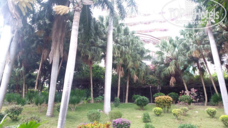 Заселялись в отель ночью. Так как заселение в этом отеле в 14.00, попросили доплату 450 юаней. Депозит не требовали. Отель средний, расположен на второй линии, до моря минут 7 пешком. Как говорили туристы, раньше к морю можно было пройти через соседний отель через калитку. Сейчас такой возможности нет. Калитка в соседнем отеле открывается картой номера отеля. Поэтому, приходилось идти в обход соседнего отеля. За несколько дней до нашего приезда в Санья прошёл мощный тайфун. Говорят, что такого тайфуна не было 30 лет. Деревья из земли вырваны в корнем, ураган был очень мощный. Как сказала отельный гид, одна пальма упала в бассейн этого отеля. Поэтому, бассейн не работал. И у меня сложилось впечатление, что сотрудники этого отеля не торопись отремонтировать бассейн. За всё время нашего отдыха, в связи с большими волнами и подводным течением, был закрыт и пляж Данунхай. Мы каждый день ездили купаться на соседний пляж. Завтраки в отеле - простые, без излишек. На территории есть маленький магазин. Номера уставшие, но вид с балкона -красивый. Уборка, смена полотенц и постельного белья - каждый день. В одном номере, в который мы заселились в первый день отдыха - плохо работал кондиционер. По нашей просьбе нам предоставили другой номер, без всяких проблем и доплат. В отеле каждый день присутствовал гид, она помогала туристам, которые обращались к ней с вопросами и за помощью. В общем- отель неплохой, но четыре звезды, которые заявлены, не соответствует действительности. Три - это максимум. Расположение понравится тем туристам, которые едут на отдых с целью тишины и любителям пеших прогулок. Территория отеля - совсем маленькая, как говорится, четыре пальмы в три ряда. Перед нашим отъездом открыли пляж Дадунхай. Но купаться на пляже разрешено только в специальных огороженных местах. И в шесть вечера, в воду уже не пускали.