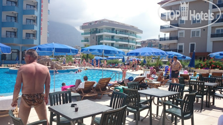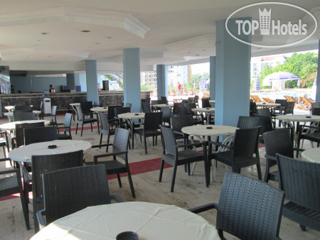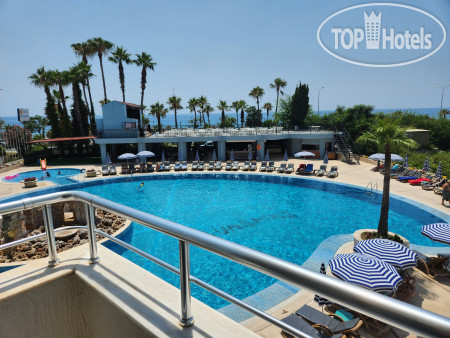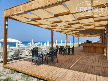 Бар на пляже, вообще не о чем ! Лежаки есть, но поломанные! Мы просто ходили купаться на море и возвращались к бассейну! Бассейн большой , глубокий! Есть фонтан, но он не работает и, видимо, очень давно!