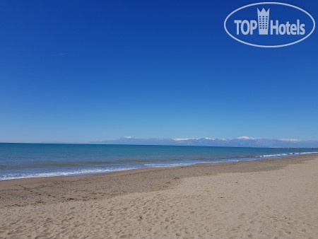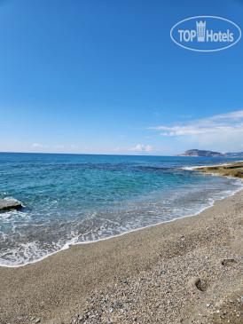 Пляж песчано-галечный (ближе к воде галечный, выше песчаный). Возможность поплавать зависит от спокойствия моря, у нас поплавать нормально вышло только в первый день, в последующие либо по пояс либо у берега т.к волны были большие.