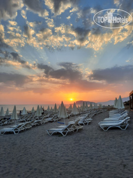 Свободных лежаков на море всегда достаточно, но т.к отель 3 звезды, то полотенца не разрешают брать на море. Большинство на море не ходят загорать, а загорают у бассейна. У бассейна почти всегда лежаки заняты с утра, что предсказуемо, особенно в дни когда море не спокойно, все скапливаются у бассейна.