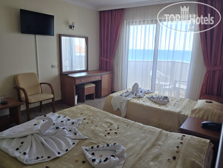 Нормальный отель, по цене (для Белорусов). Завтраки не очень для людей, кто любит поесть. Мне хватало, яйцо вар. или омлет. Но есть и картошка во фритюре, сосиски, овощи ... Иногда оладушки. Обеды и ужин норм, можно и мужчине поесть, если конечно не гурман. Девушка Елена на ресепшене норм, один раз при заселении подошла я с улыбкой и шоколадкой, доплатила за раннее заселение 10 дол. и всё, не было необходимости подходить за все 13 дней. Сча море супер- и заход и волн нет, но был и шторм, и дождь, и заход плохой, но на волнах получить такой офигенный массаж ног тож не всегда получишь... В общем , главное ваше позитивное настроение, ну и по цене что вы хотите, да и номер 207 отличный,чистый, норм мебель.ну да, ванна ужасна, но я ж не купаюсь там.