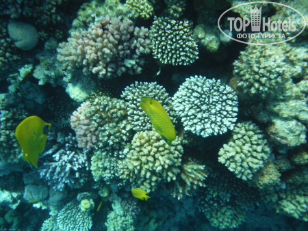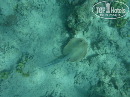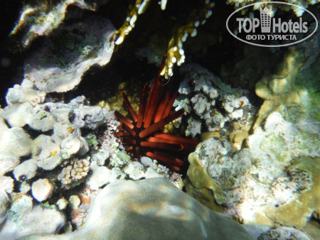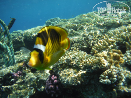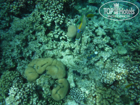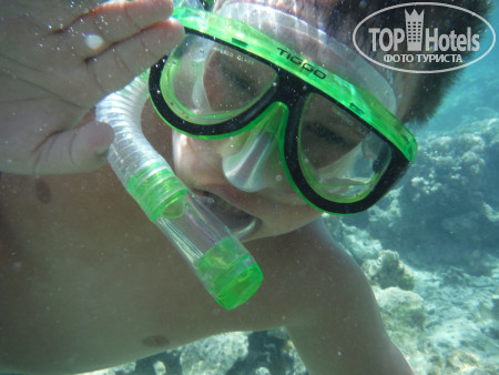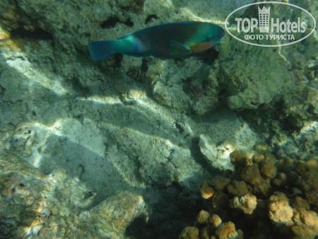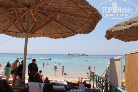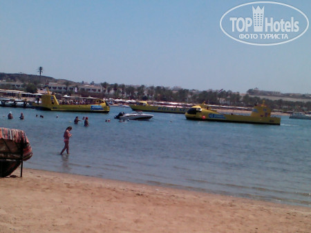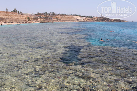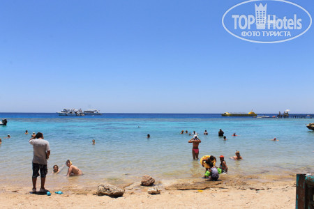 3. Пляж. На автобусе в 9.30 возят на Пальму, этот пляж очень красивый и риф классный, но бестолковый в плане купания...На фото видно мелководные участки до рифа, по которому типа можно пешком зайти без понтона и купаться детям или возрастным или кто на глубине боиться плавать..но по факту - там столько камней, что даже в аквашузах вы и 10 метров не пройдете, не пытайтесь, без ног останетесь! потом там очень долго неглубоко идти - тоже минус в этом если решитесь плыть - животом об эти же камни - малоприятно!!! Для тех кто с понтона сразу на глубине может спокойно плавать, не обольщайтесь тоже!!! - там буйками загородки расчерчены, места очень мало для дайвинга и плавания, и постоянно красный флаг висит, охрана всех затаскивает обратно!!! там очень сильные течения - даже с ластами вода несет...короче, этот бесплатный отельный пляж - не особо пригодный для плавания...Мы потратили кучу денег на такси и пляжи, по разным пляжам Шарма ездили каждый день, лучшие пляжи - Фарша и Ильхимна. На них вход с носа 4$, такси 2$ в одну сторону от отеля, таксисты конечно 3 доллара просят - но норма 2 доллара, лучше деньги на египетские фунты поменяйте, за 100 фунтов таксисты повезут!