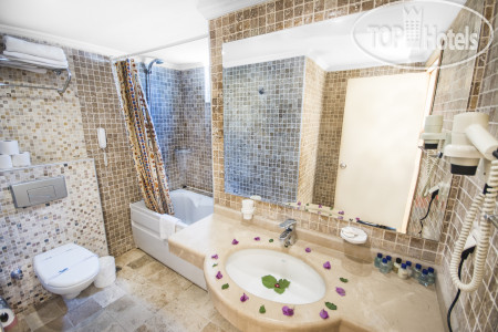 Ресепшен и отельный гид грубо вымогают деньги за всё что только можно! Противно! Вообще не хотелось даже смотреть на этих людей проходя мимо! До пляжа минуты две ходьбы. По пляжу бегают зазывалы в магазин кожи и хамам при отеле - остались и тем и другим не довольны! Не тратьте на это время и настроение. Экскурсии брали в местном агентстве Insu, его можно найти, если пройти по набережной до памятника рыбки, восле него свернуть вглубь посёлка и метров через 50 будет оно. Остались довольными и ценами и обслуживанием! Передавайте привет работающей там Ирине!