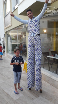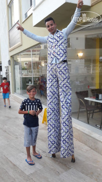 Заехали около 15.00, сразу заселили. Отель вообще не тянет на 4 звезды, территория не большая и всё в состоянии уныния. Дружелюбный персонал в ресторане, хотя питание однообразное. Напитки любые с утра до 24:00. Уборка номеров проводилась не ежедневно, менялось полотенца и белье, на этом всё. Номер у нас был маленький, просили больше, не дали! Кажется была анимация (кому нужна), нам нет.