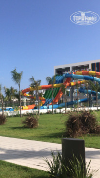 Отель Только 18+, от этого ещё круче. И дальше пошли одни плюсы, почти без нареканий. Немного не хватает буйной зелени, но она ещё вырастет, хотя в остальном всё чудесно. Но есть и широкая полоса из высоких и раскидистых пальм прямо перед самим пляжем, много тени от их листьев, тут же раскиданы лежак. Территория отеля удобная, всё разделено на зоны, огромная ухоженная территория, отличный аквапарк.