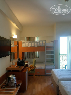 мы жили в "семейном" номере на "первом", помимо двуспальной кровати, стояла двухярусная, по нашей просьбе принесли кроватку для ребёнка, к этому претензий нет