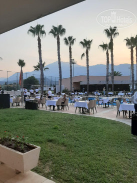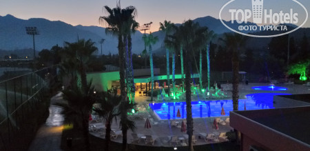 Окно выходит на бассейн и горы, казалось бы, красота, но не тут-то было. В отеле каждый день с 20:30 до 23:30 проходит дискотека и это мягко говоря ужас. Музыка долбит так, что спать в таком шуме невозможно. Учтите это при бронировании, нужно просить номер с видом на море, там музыку слышно меньше, у нас не было возможности поменять номер и эта неделя вся прошла под ужасную попсу по вечерам и беспокойный сон у ребенка