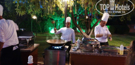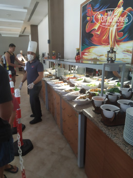 Обед и ужин: однообразные одинаковые блюда, на ужин каждый день есть 1 блюдо, которые отличается в течении недели, остальное одно и то же все время. Выбор десертов тоже не впечатлил, 6-7 тортиков, у которых в основе бисквит, а сверху желе с разными ароматизаторами и красителями (их не жалеют), один раз давали пахлаву