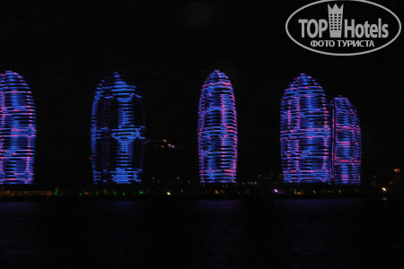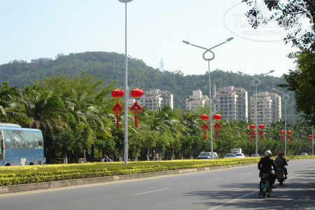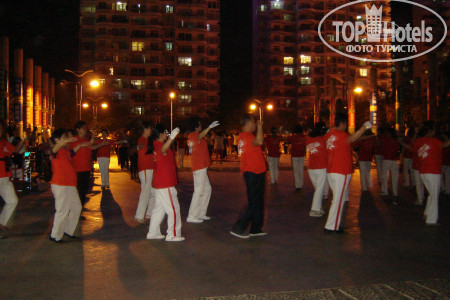 Расположение: Отель находится на первой береговой линии . Пляж песчаный. Море очень теплое+27. Уже с 6 утра много встречающих рассвет и купающихся. Есть свои лежаки с 8 до 18. Пляжных полотенец нет. На протяжении всего пляжа есть 3 огороженных буйками загона для плавания.Охранники свистят кто заплывает за буйки. В конце пляжа около забора тусуются китайцы-нудисты. Иногда завешиваются простынями , огораживая себе место. После заката купаться запрещено. На берегу много отдыхающих и местных , кто на фотосессиии, кто играет в волейбол, кто просто созерцает красоту. Вечером на набережной зажигается множество огней, иллюминации, начинает работать парк аттракционов. В кафе и ресторанах поют, танцуют, выступают артисты разных жанров. На площади начинаются китайские танцы.