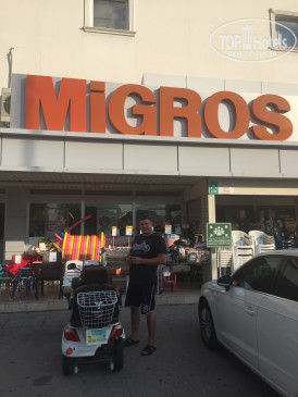 Магазины все рядом самый ближайший Шок и чуть подальше на Ататюрк бульваре Мигрос - это из сетевых, а также вокруг есть мелкие магазины и много разных кафе любого направления: пекарни, пивнушки, чайные, пафосные рестораны и простые забегаловки .