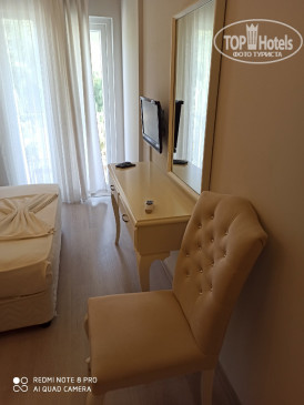 Есть проблема с интернетом ,вернее в нашем номере его не было (а мы жили на самом последнем этаже) , интернет только в зоне рецепции. Вроде есть горячая вода в термосе в зоне рецепции для общего пользования, но мы не пользовались поэтому не уверена. В номерах точно нет чайников итп. Чай , кофе в течение дня мы старались пить в кафешках - где еще попьешь традиционный турецкий чай и кофе как не в Турции). Полотенец 2 на человека, полотенца для ног нет, полотенец для пляжа тоже нет. в отеле хорошая вентиляция в ванне всегда просыхали полотенца ,запаха прелости не было.