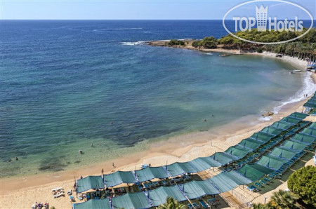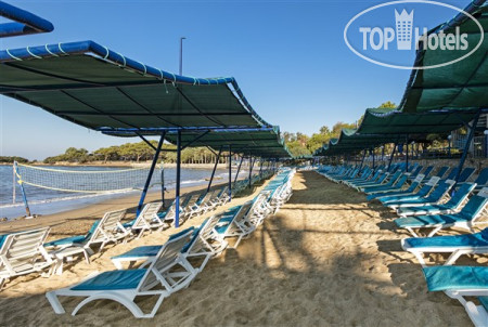 Пляж отмечен голубым флагом и имеет общую территорию для двух отелей сети «Özkaymak». Вход в море песок с мелкой галькой, поэтому проблем быть не должно. Встречаются плиты, но линяя плит ближе к пирсу. C пирса имеется спуск по лестнице