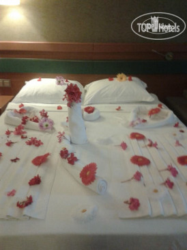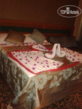 Номерной фонд в хорошем состоянии, две двухспальные кровати, шкаф, тумбы, сейф (бесплатно), набор для душа. Холодильнике минеральная вода и сок один раз за посещение отеля, так же ежедневно пополняли питьевой водой. Номера убирали ежедневно и несколько раз в неделю меняли полотенца.