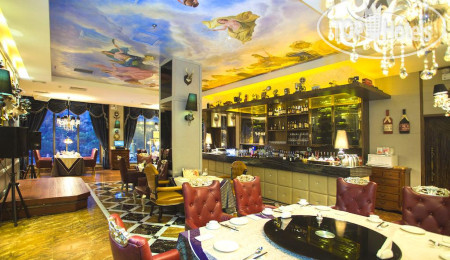 Кафе и магазины рядом.Перед отъездом домой когда ждал трансфер в холл зашел молодой китайский гопник и стал рамсить мне чьо-то на китайскои.Я ему ответил на русском что не понимаю что он говорит.Он помялся и подав мне руку для приветствия на что я ответил тем же удалился.Потом мне сказали,что он типа вызывпл меня на поединок.Отель без своей территории и бассейна.Советую как бюджетный вариант. Цены здесь чуть выше чем у нас.Пиво такая же шняга как и у нас.Водка здесь в основном 52% на любителя.Купил водку со змеей внутри.Вкус как у обычной настойки.Блюда в кафешках подают с горкой, но мяса мало.Китайцы предпочитают рыбу.По тротуару ходите с оглядкой ,т.к. китайцы объезжат пробки по ним на элетромотороллерах и вы рискуете быть сбитым потому что они ездят беззвучно.
